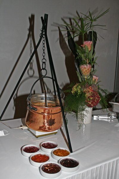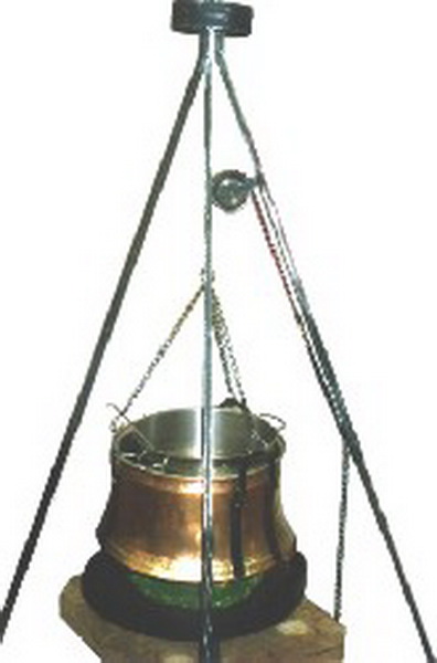Der Kupferkessel wird zum stilgerechten Kochen von Gulasch und Co. verwendet. Mit einer elektrischen Heizung darunter kann er auch direkt am Buffet aufgestellt werden.