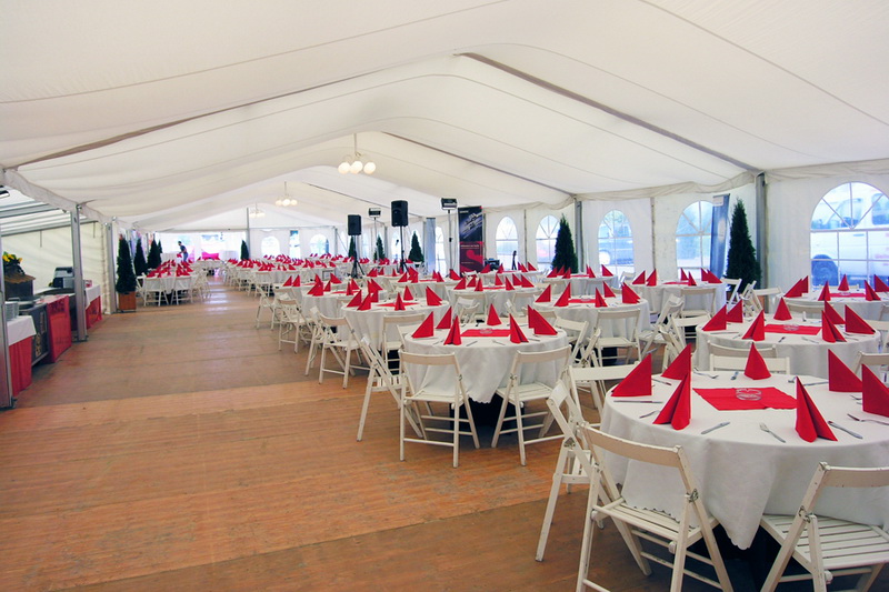 Für größere Veranstaltungen sind unsere Party- oder Festzelte geeignet. Für Messestände, Geburtstagsfeiern, Gala-Diners oder Vereinsfeste – das Partyzelt ist immer eine gute Wahl. Es kann auf jedem Untergrund aufgestellt werden und wahlweise auch mit einem fugenlos verschraubten Dielenboden versehen werden.